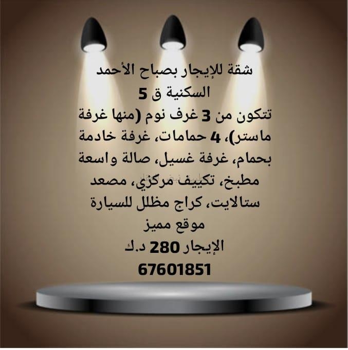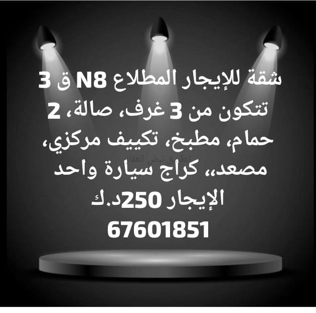 للإيجار شقه في المطلاع N3 تتكون من 3 غرف منهم غرفه ماستر وصاله ومطبخ …